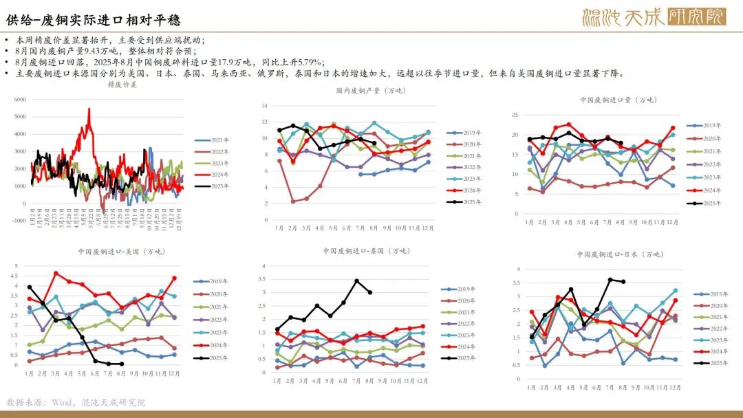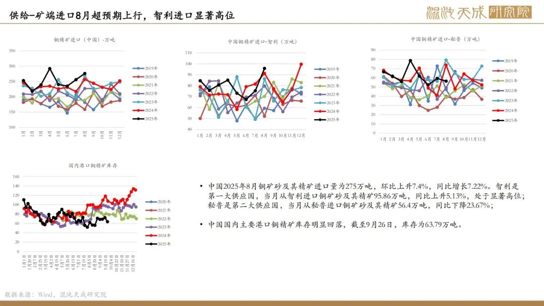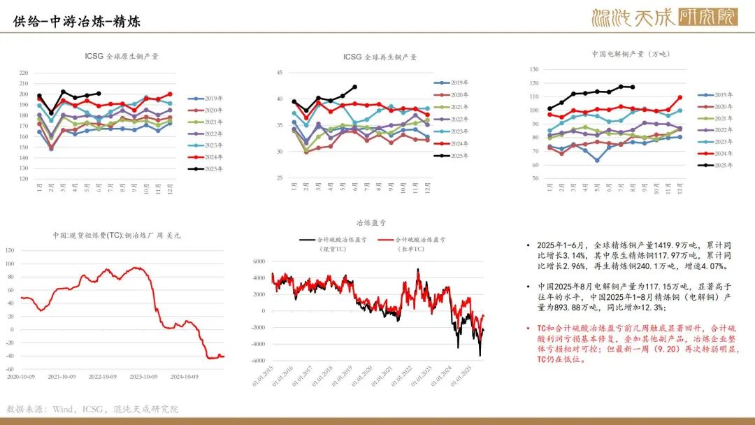 矿端干扰:自由港迈克墨伦公司官网公布称,9月8日在印尼Grasberg Block Cave矿发生的泥浆溃涌事故中,两名员工不幸身亡,目前仍在全力搜救五名失踪人员。事故导致约80万吨湿料瞬间涌入井下多个作业层,矿区自当日已暂停作业。公司预计2025年底完成事故调查,并将三季度铜销量预估下调4%,金销量下调6%。该公司2026年的产量可能比此前估计的17亿磅铜(77万吨)和160万盎司黄金低约35%。(铜产量下降量约为27万吨,约为原生铜产量占比的1.2%);这存在较大的供应扰动。